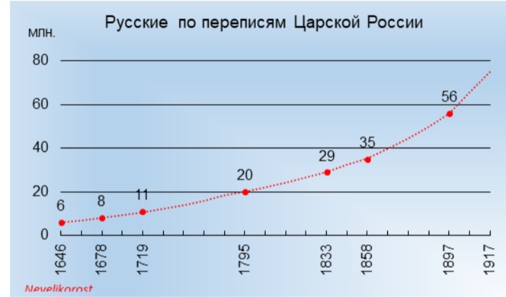 На лицо заметное отставание темпов великороссов относительно общего населения планеты . Сказались 2 мировые войны ,локальные войны и кофликты , революция ,гражданская война, репрессии, голод. НО РОСТ ВСЕ ЖЕ БЫЛ, ПОЧТИ 100 МЛН ВЫРОСЛИ НЕ В 4 РАЗА КОНЕЧНО ДО 400 МЛН ,НО ВСЕ ЖЕ СТАЛО ПОЧТИ150 МЛН